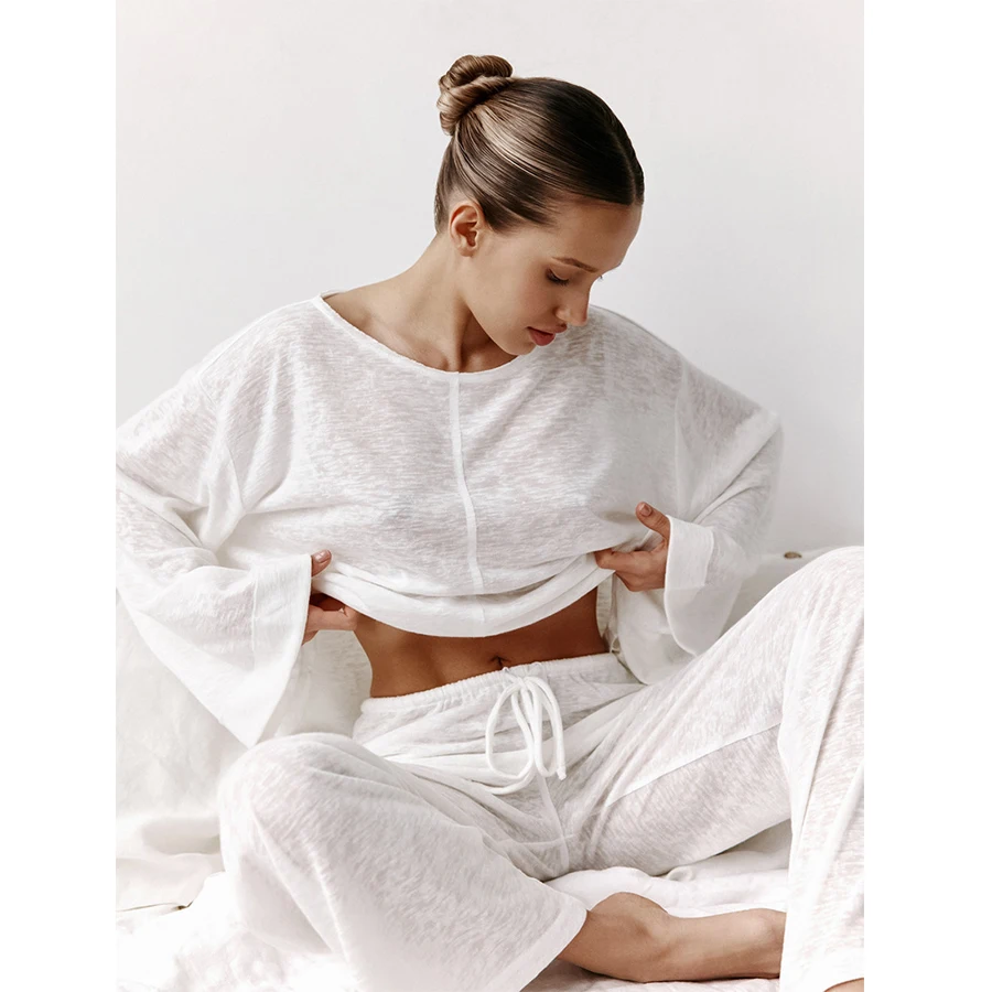 New Fashion 100% Cotton Striped Shirt Suit Summer Long Sleeve Shorts Loose Women's Casual Two-piece Set